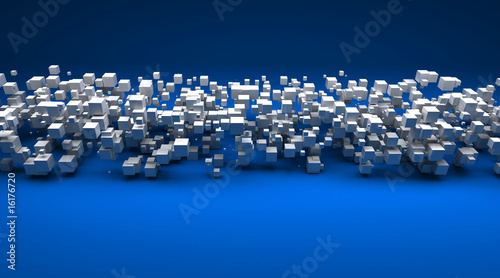 © FrankBoston, Obraz premium White cubic particles against a red background