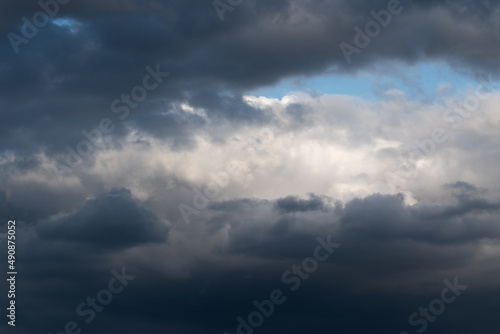 Obraz premium White cumulus cloud framed with dark ominous clouds - cloudscape