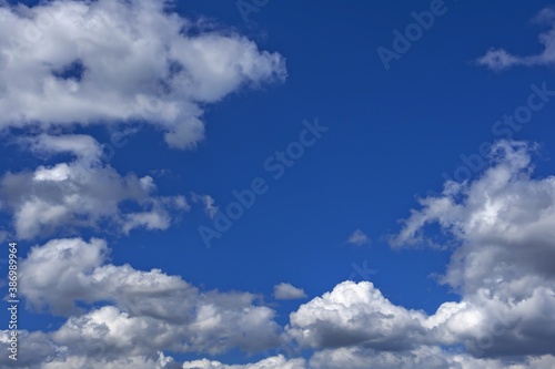 Fototapeta premium white cumulus clouds against a bright blue sky