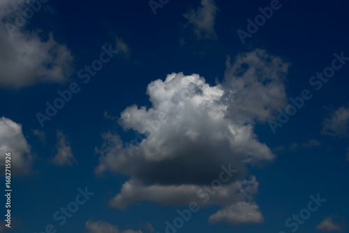 Fototapeta premium White cumulus clouds drifting across a deep blue sky