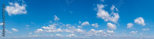 Obraz premium White cumulus clouds in blue sky panoramic high resolution background