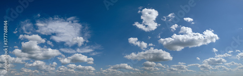 Obraz premium White cumulus clouds in blue sky panoramic high resolution background