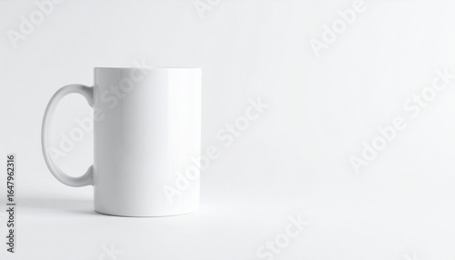 © hardvicore, Fototapeta premium White cup for drinking. Ceramic coffee mug mock-up on white backdrop. Minimal tableware.