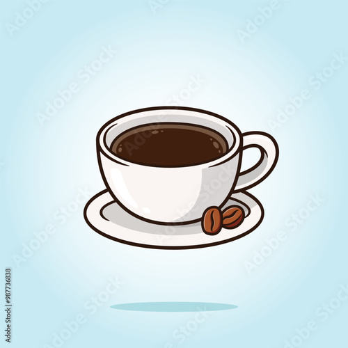 © gps.stud, Obraz premium White cup of black coffee with coffee bean. vector cartoon illustration