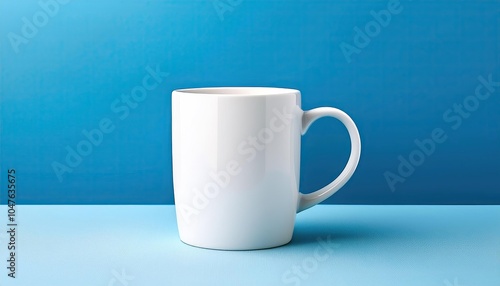 Obraz premium White cup on blue background