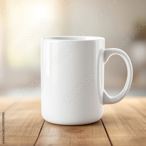 © Mikhail, Obraz premium white cup on wooden table
