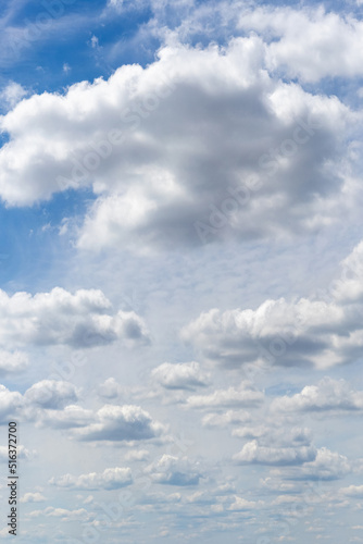 © Volodymyr, Obraz premium White curly clouds in a blue sky, vertical format
