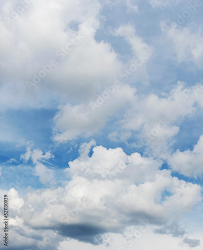 Obraz premium White curly clouds in a blue sky, vertical format