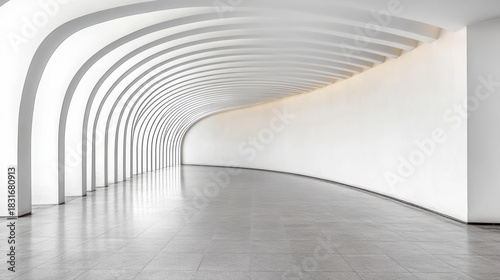 Fototapeta premium White curved architectural corridor with repeating arches and soft light evoking calm