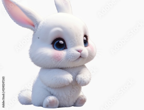 © My Ai, Obraz premium White cute bunny on white background