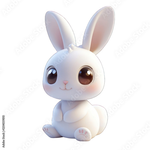 Fototapeta premium White Cute 3D chibi bunny isolated on transparent background