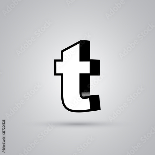 Fototapeta premium White 3D vector letter T lowercase with black border isolated on white background