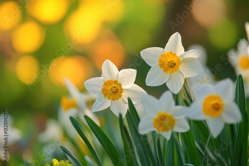 © Minerva Studio, Fototapeta premium White daffodils blooming in spring with bokeh effect