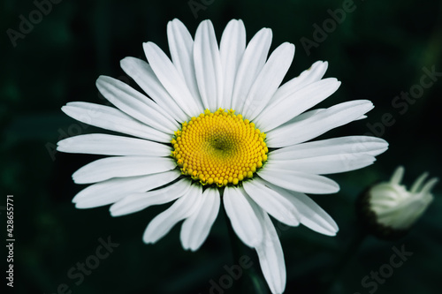 Obraz premium White daisy on a dark background. Flower plants in summer in nature