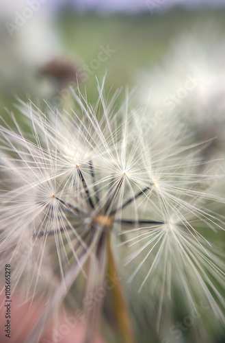 © VujaSaloka, Obraz premium white dandelion flower with seeds in the garden