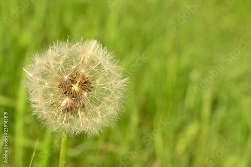 Fototapeta premium White dandelion fluff in the early spring