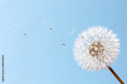 © Евгения Глинская, Obraz premium White dandelion on a blue background