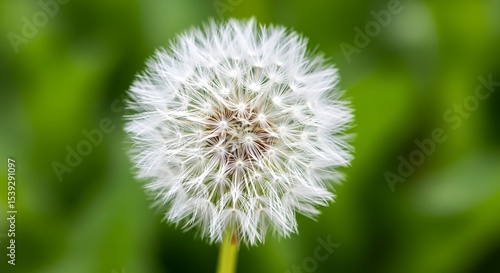 © Nay_27, Fototapeta premium White Dandelion Seed Head Against Green Bokeh Background in Summer
