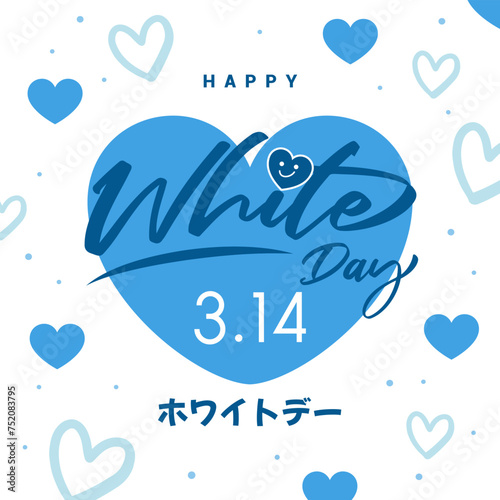 © Farosofa, Obraz premium White Day greeting card poster vector illustration. Heart doodle background. Japanese Translation: " White day"