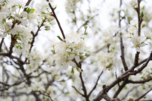 © Aleksandra Iarosh, Fototapeta premium white delicate spring flowers on a large tree