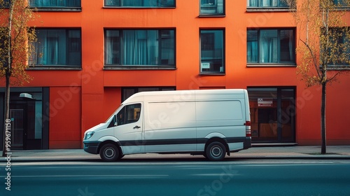 Obraz premium White Delivery Van Parked in Front of Orange Building