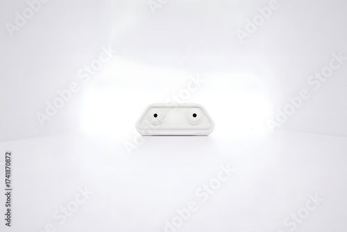 Fototapeta premium White device on a white background with two black dots and a clean minimalist...