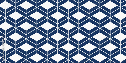 © Crashik, Fototapeta premium White diamonds with blue chevrons. Vector simple pattern of repeating rhombuses. Geometric vector pattern.