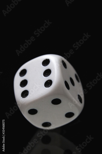 © Radomir Rezny, Fototapeta premium White dice on the black background.