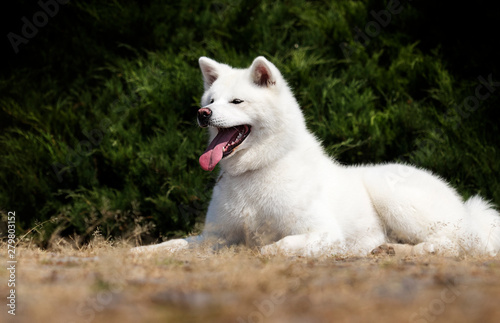 Obraz premium white dog breed japanese akita inu outdoors
