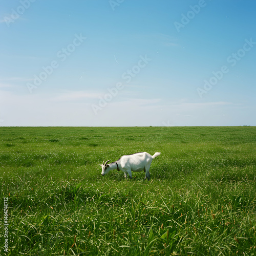 © SHOKAT, Fototapeta premium White Dog in Green Field, Summer Meadow Landscape Photography