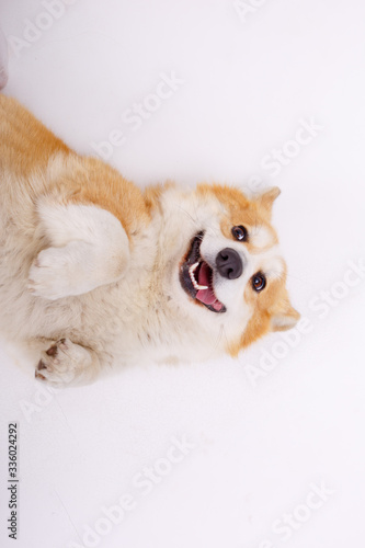 © Olesya Pogosskaya, Fototapeta premium white dog lying on floor