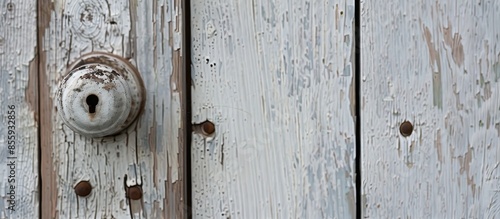 Fototapeta premium White door, key knob. Copy space image. Place for adding text and design