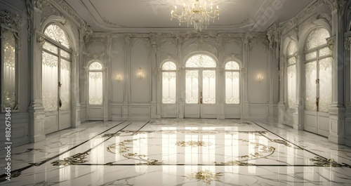 Naklejka premium white doorway door entrance interior of mansion palace lobby. gothic...