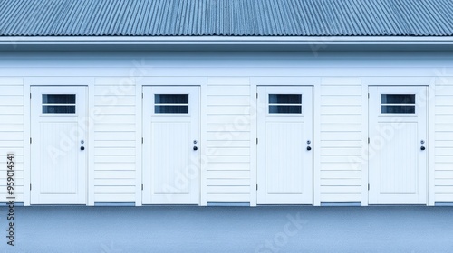 Fototapeta premium White double doors with glass panels and a security window provide an elegant...