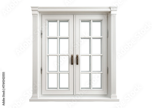 Fototapeta premium White double-hung window with ornate frame