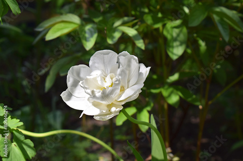 Obraz premium White double tulip flower close up.