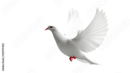 Fototapeta premium White Dove Flies Gracefully, Isolated on White Background