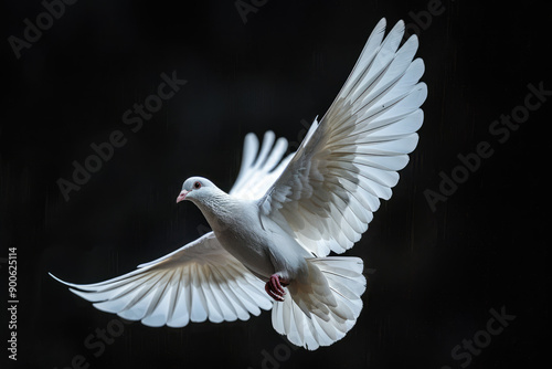 Obraz premium white dove flying, black solid clean background