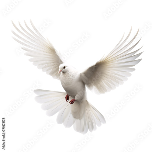 Naklejka premium White dove flying in the air in freedom symbolizing peace on an isolated background