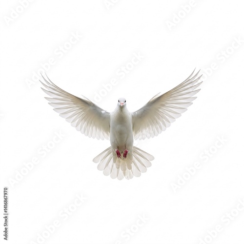 © Viktoriia, Fototapeta premium White dove flying, isolated on white background