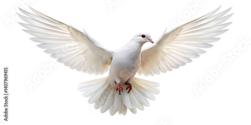 © tanzinaakter, Fototapeta premium white dove flying isolated on white background PNG. GENERATIVE AI