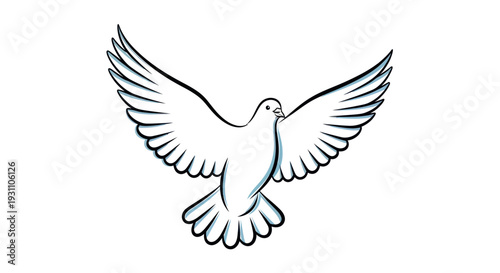 © siti, Fototapeta premium White Dove Flying Spreading Wings Isolated On White Background