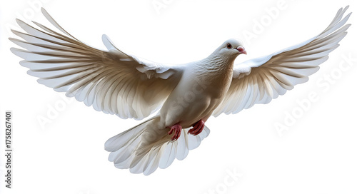 © Edgar Martirosyan, Naklejka premium white dove flying with its wings fully spread, isolated against a transparent background