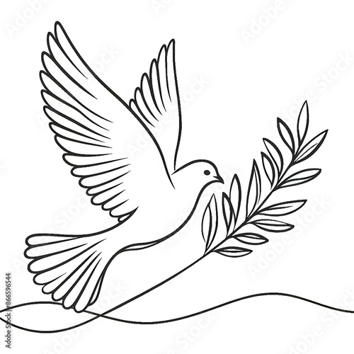 © Mariana, Fototapeta premium white dove flying with olive branch one line continuous