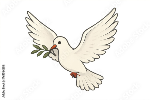 Fototapeta premium White dove flying with olive branch, symbolizing peace, hope, freedom, and...