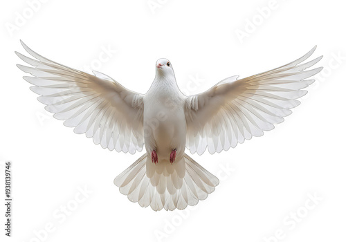 © Emna, Fototapeta premium White dove flying with wings spread isolated on transparent background