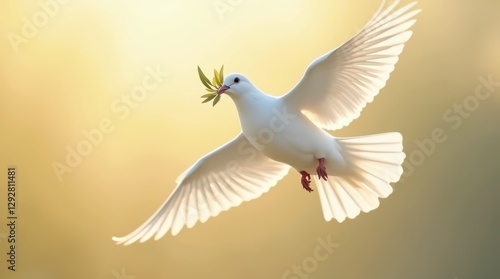 © Kristina, Obraz premium white dove holding an olive branch, with soft feathers