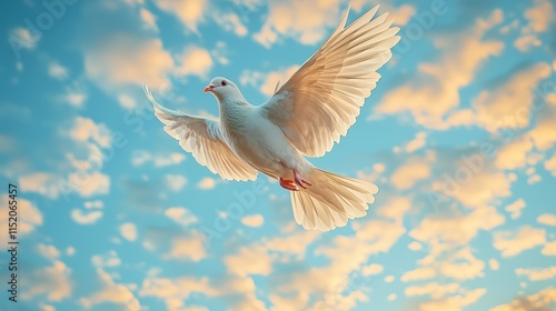 Obraz premium White Dove in Flight Against a Beautiful Sky Background