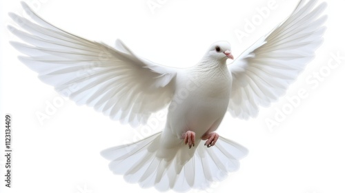 Fototapeta premium White Dove in Flight Against a Light Background Captured Elegantly