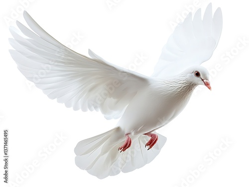 © Hafizd, Fototapeta premium White Dove in Flight Against White (1)